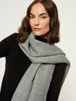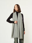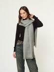 Estola Kamet en tonalidad gris, confeccionada en baby alpaca. Este accesorio destaca por su diseño de color entero que resalta su simplicidad elegante. Presenta bordes terminados en flecos clásicos, combinando una calidez excepcional con una estética minimalista y sofisticada para cualquier ocasión. | Material predominante: Baby Alpaca