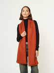 Estola Kamet en tonalidad ladrillo, confeccionada en baby alpaca. Este accesorio destaca por su diseño de color entero que resalta su simplicidad elegante. Presenta bordes terminados en flecos clásicos, combinando una calidez excepcional con una estética minimalista y sofisticada para cualquier ocasión. | Material predominante: Baby Alpaca