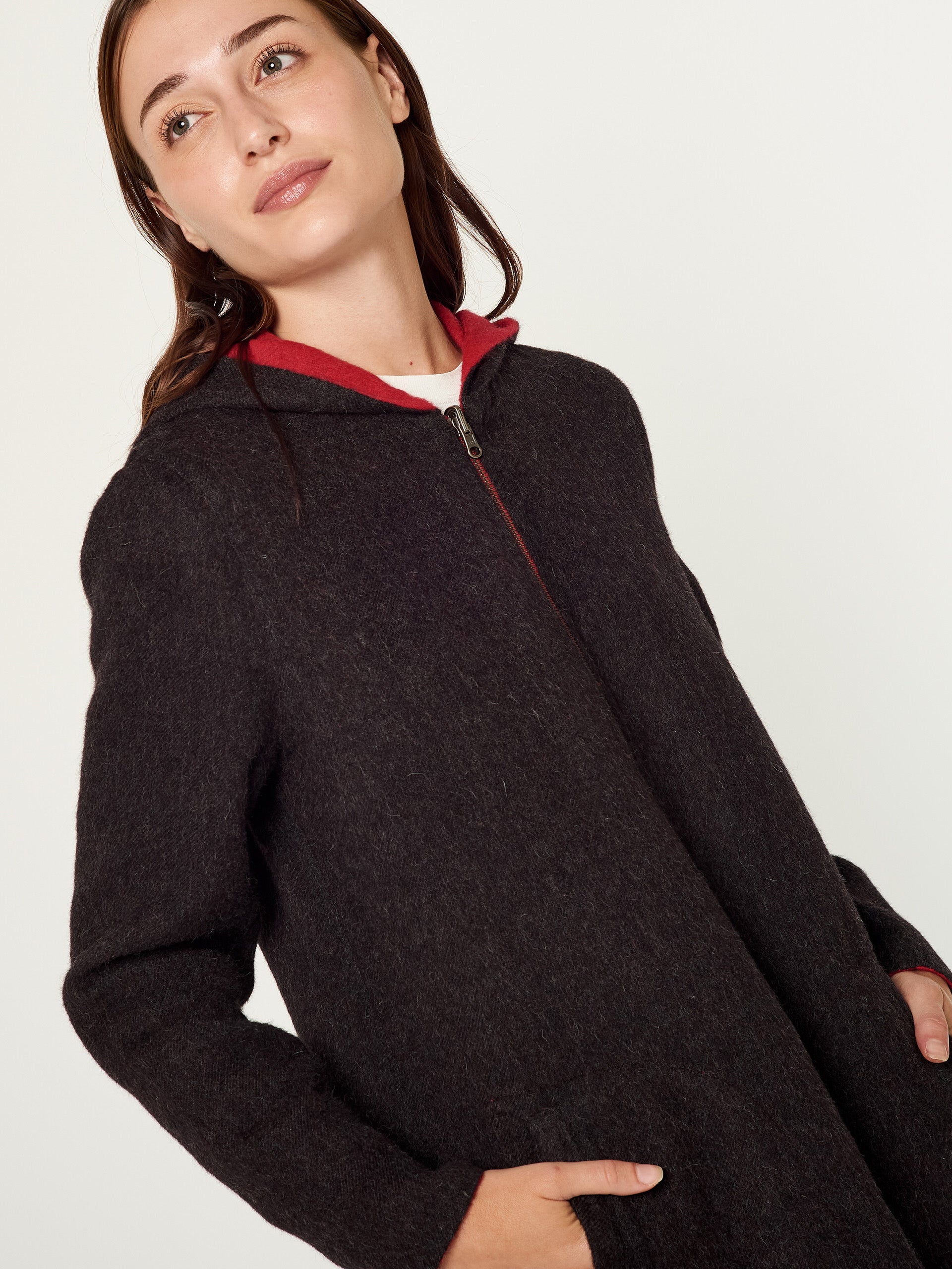 Explora la elegancia reversible con nuestra pieza confeccionada en suave fibra de baby alpaca y lana. Su versatilidad la hace destacar en cualquier conjunto, siendo el centro de atención. El abrigo Incalpaca 834 ofrece estilo y comodidad. Conviértelo en tu pieza clave para un look impecable y cálido en cualquier temporada. | Material predominante: Baby Alpaca