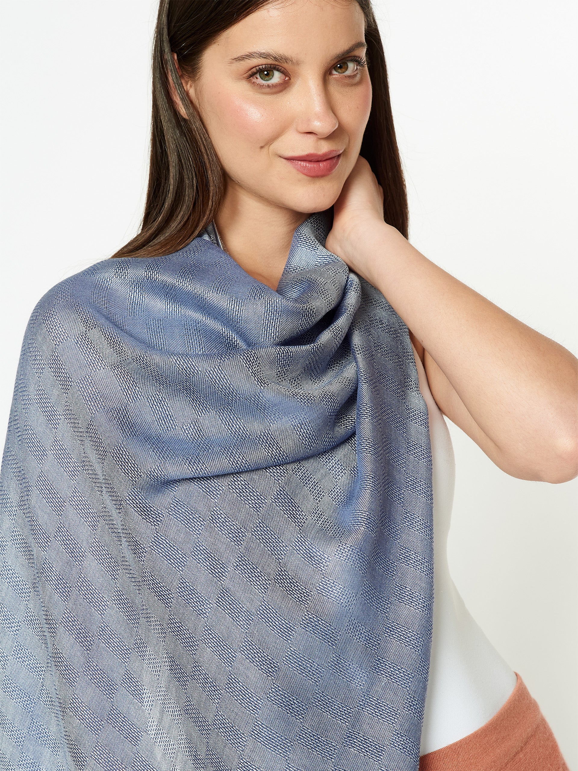 Estola Plano Lipez en tonalidad azul, confeccionada en una mezcla de baby alpaca, seda y tencel. De textura ligera y suave, es una prenda versátil, ideal para la media estación por su caída fluida y confort natural. | Material predominante: Tencel