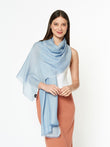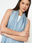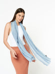 Estola Plano Zapareli en tonalidad azul, confeccionada en una mezcla de baby alpaca, seda y tencel. Presenta una textura tipo crepé, con un acabado suave, ligero y delicado, ideal para complementar cualquier look con elegancia. | Material predominante: Tencel