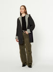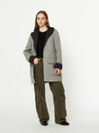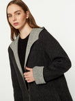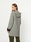 Abrigo Misti en tonalidad gris, destaca por su diseño reversible con capucha, cierre metálico y bolsillos parche. Confeccionado en una mezcla de alpaca, lana y nylon. | Material predominante: Alpaca