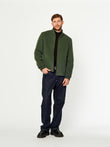 Casaca Baker en tonalidad verde, destaca por sus detalles de cuero en el cierre y bolsillos. Los puños y el interior del cuello alto están tejidos, cuenta con forro para un extra de comodidad. Confeccionada en fibra de alpaca y lana. | Material predominante: Lana