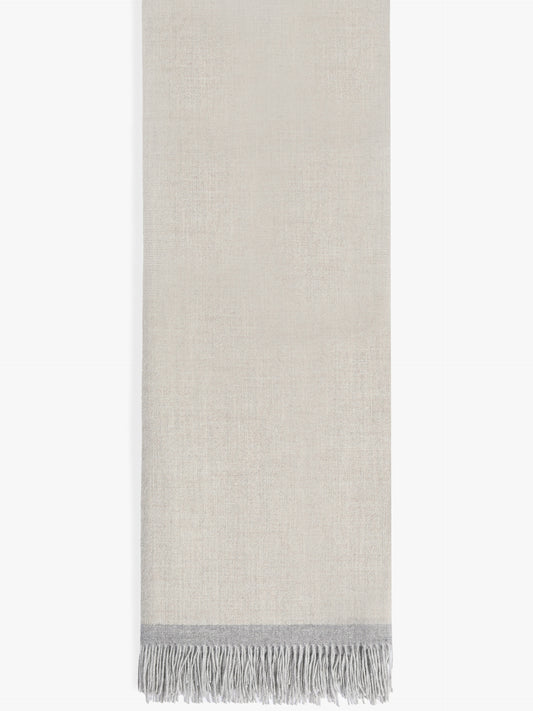 Manta de color entero beige, tejida en 100% baby alpaca con flecos largos. Lujo y...