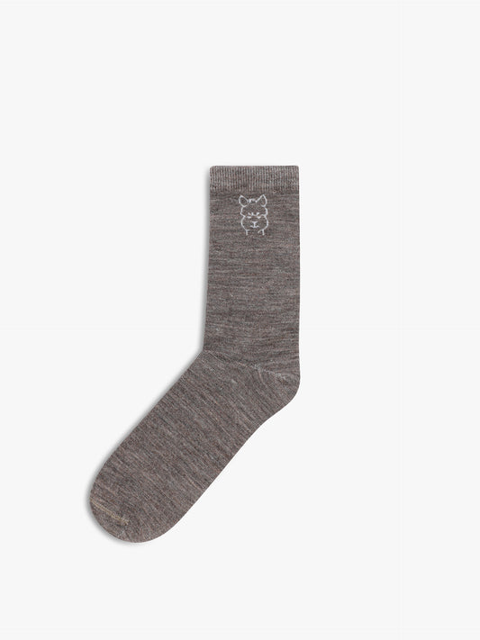 Media Grintovec en tonalidad café, confeccionada en una mezcla de baby alpaca, poliamida, seda y...