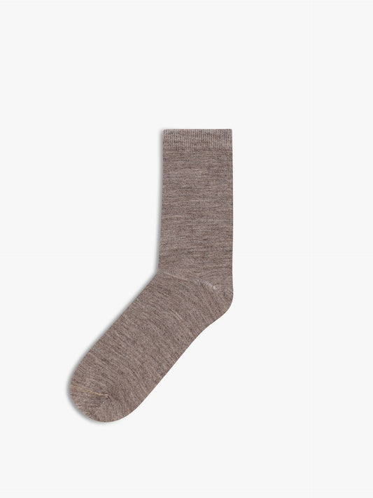 Media Antelao en tonalidad topo, confeccionada en una mezcla de baby alpaca, poliamida, seda y...