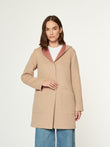 Abrigo Karisimbi en tonalidad rosado/beige, destaca por su diseño reversible con capucha, bolsillos parche y broches metálicos ocultos. Confeccionado en una mezcla de alpaca, lana y nylon. | Material predominante: Alpaca